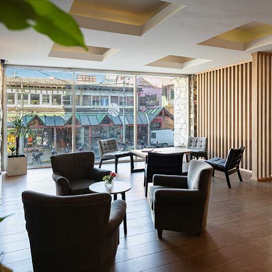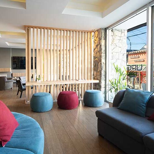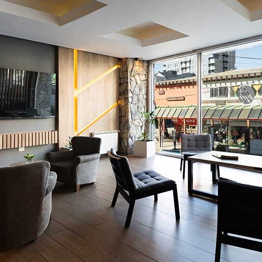 El Hotel Lagos Andinos presta servicios desde el año 1975. Actualmente fue remodelado y re categorizado a 2 estrellas. Se ubica en el centro de la Cuidad de San Carlos de Bariloche, a dos cuadras del Lago Nahuel Huapi, a media cuadra de la calle principal Mitre y de sus locales comerciales más importantes.