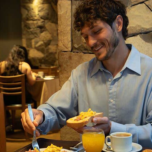 Nuestro restaurant ofrece un servicio completo de desayuno buffet y diferentes opciones para disfrutar durante la cena. Los huéspedes pueden relajarse en la sala de estar y elegir entre gran variedad de refrescos en el Bar. El Hotel posee además estacionamiento privado sujeto a disponibilidad y guarda equipaje.